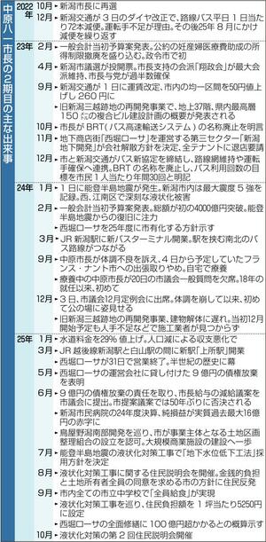 新潟市の中原八一市長(66)の2期目の任期が残り1年を切った。公約で「新潟の明るい未来を切り開く」と掲げ、子育て支援や拠点性向上などに注力。一方で、2024年1月の能登半島地震の復旧対応に追われ、公共交通網維持への模索が続く。中原市政の3年間を振り返り、成果と課題、「これから」を見つめる。(4回続きの1)