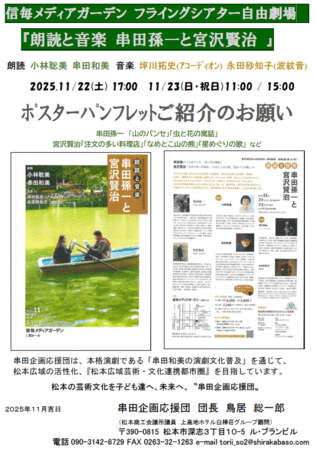 串田企画第26弾!信毎メディアガーデン×串田和美朗読と音楽 串田孫一と宮沢賢治