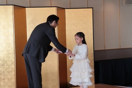 贈呈式では、ホテルパティシエが実現した夢のケーキに加え、表彰状と賞品を贈呈。受賞者のおおぶち こはる様からは「うれしい!自分の絵がえらばれるなんてうそかと思った!最初に星の部分を食べたい。」と、かわいらしい喜びの声をいただきました。保護者の方からは、「第1回目のコンテストから応募を続けていて、本人も“これだけは絶対に叶えたい”と言って諦めずに取り組んでいました。スカイビュッフェ51のスイーツの色やグラデーションが大好きで、パティシエさんが作るケーキをよく観察していて、自分の絵にもそれを取り入れるなど工夫していました、選んでいただいて本当に喜んでいます。」とコメントをいただきました。