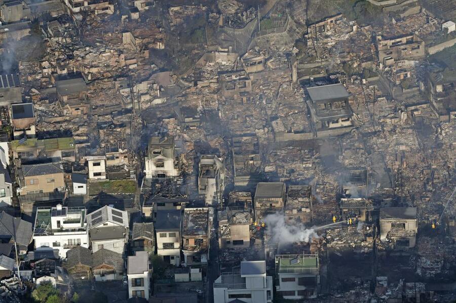 大分市佐賀関の大規模火災現場=19日午前9時ごろ