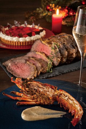 ホリデーシーズンを彩る本ビュッフェでは、クリスマス限定メニューとして「低温で焼き上げたローストビーフ」や「イセエビのロースト マルセイエーズソース」 、「牛肉の赤ワイン煮」 、「ジャンボショートケーキ」など、豪華で心躍る料理をご用意しております。