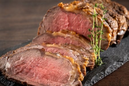 じっくりと焼き上げたローストビーフは、柔らかな肉質と旨味が口いっぱいに広がり、クリスマスのテーブルを華やかに彩る贅沢な一皿に。