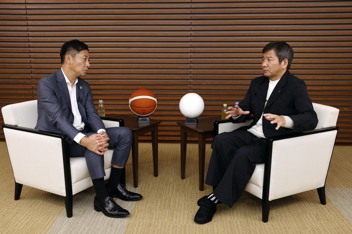 二つのプロスポーツリーグが大改革の年を迎えた。サッカーJリーグは従来の2月開幕から、8月の開幕へとシーズンを移行。バスケットボールBリーグは本格アリーナの確保、平均入場者数、売上高が参入条件の新1部「Bリーグ・プレミア」が秋にスタートする。Jリーグの野々村芳和、Bリーグの島田慎二=村上市出身=の両チェアマンがさらなる飛躍へ決意を語った。