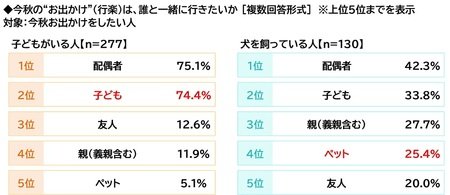 今秋一緒にお出かけしたい人 1位「配偶者」2位「子ども」3位「友人」