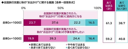 「全国旅行支援が実施されたら、秋のお出かけに前向きになる」61%
