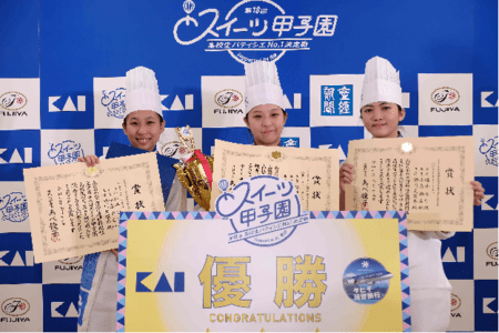 令和7年9月15日に日本菓子専門学校(東京都世田谷区)で開かれた「スイーツ甲子園第18回高校生パティシエNo1決定戦」において、学校法人育成学園 育成調理師専門学校(尼崎市開明町2丁目30-2)のチーム「Éclat fière(エクラフィエール)」が、優勝という素晴らしい成績を収められました。