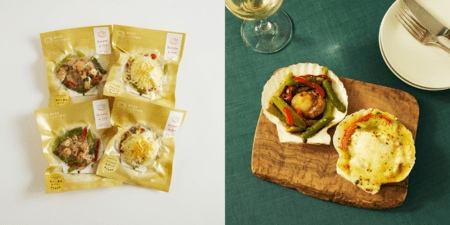 貝殻をお皿に見立て、肉厚で旨味たっぷりのホタテを「ベシャメル&チーズ」と「焦がし醤油&バター」の2種の味わいでお楽しみいただけるセットです。電子レンジ500wで約3分半温めるだけで本格的な味わいに。ギフトやパーティー、ご自宅でのちょっとしたご褒美におすすめです。