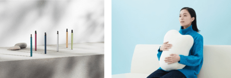 「fufuly(フフリー)」は、ふれあっている仲間の呼吸につられる、生き物の性質「呼吸の引き込み現象」から生まれた、まるで生き物が呼吸するように膨らんだり縮んだりするクッションです。ご使用方法は、スイッチを入れて抱きかかえるだけ。仕事や家事の合間などのすきま時間に、3つのモード(work mode/rest mode/sleep mode)から自分に合った呼吸リズムを選ぶことができます。息をモチーフにした形と、澄んだ空気をイメージしたデザインで、くびれのある有機的な形状は気分に合わせて様々な抱き方が可能です。