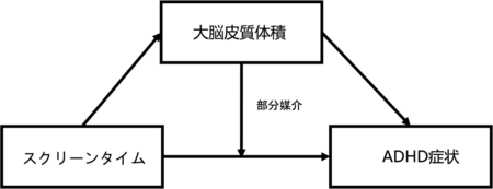 (日本語タイトル:スクリーンタイムと注意欠如多動症(ADHD)症状およびその発達との関連:脳構造の媒介的役割)