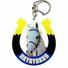 アクリルキーホルダーは、蹄鉄をイメージした勝負服柄の枠に競走馬の肖像を配置しました。