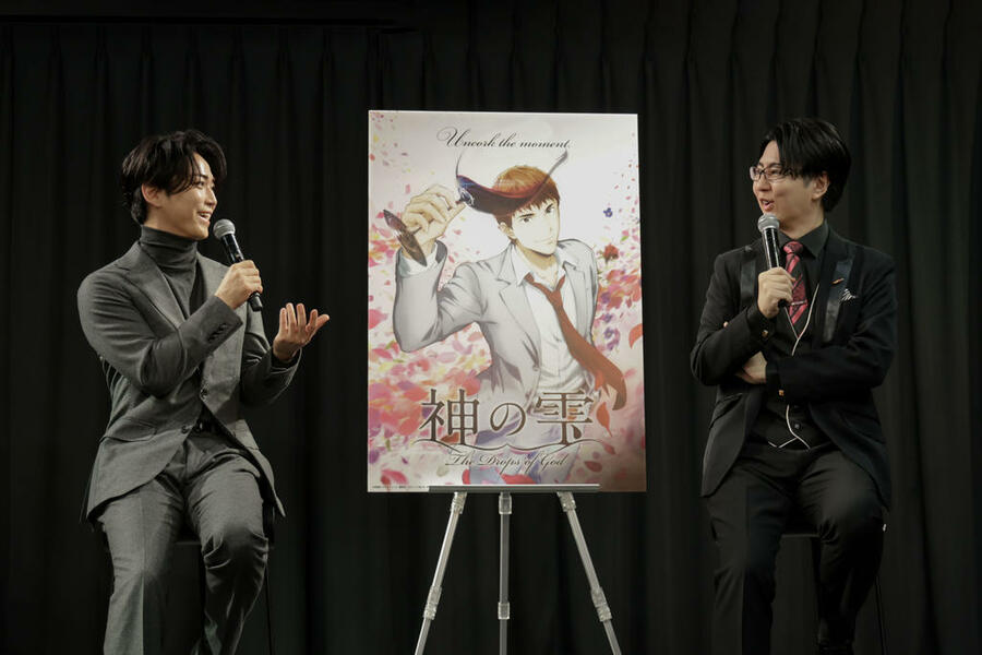 大阪成蹊大学(大阪市東淀川区/学長:中村佳正)芸術学部長の糸曽賢志教授が監督を務めるアニメーション版「神の雫」の制作発表会が11月20日に開催され、糸曽教授と主演声優の亀梨和也氏がステージに並んで登壇。制作過程やアフレコ時のエピソードなどを語りました。