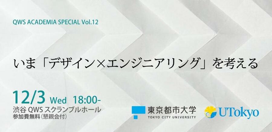 2025年12月3日(水)、SHIBUYA QWS(渋谷キューズ)スクランブルホールにて、「いま『デザイン×エンジニアリング』を考える」を開催します。本シンポジウムでは、東京大学の藤井輝夫総長、産業界の第一線で実践を重ねるゲストをお迎えし、最新のプロジェクトや構想に関する情報をシェアするとともに、これからの社会における学術と実践の融合について語り合います。未来をつくる学びと実践の最前線に、ぜひご参加ください。