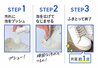 土や砂などの大きな汚れを払ったあと、3つのステップでご使用ください。