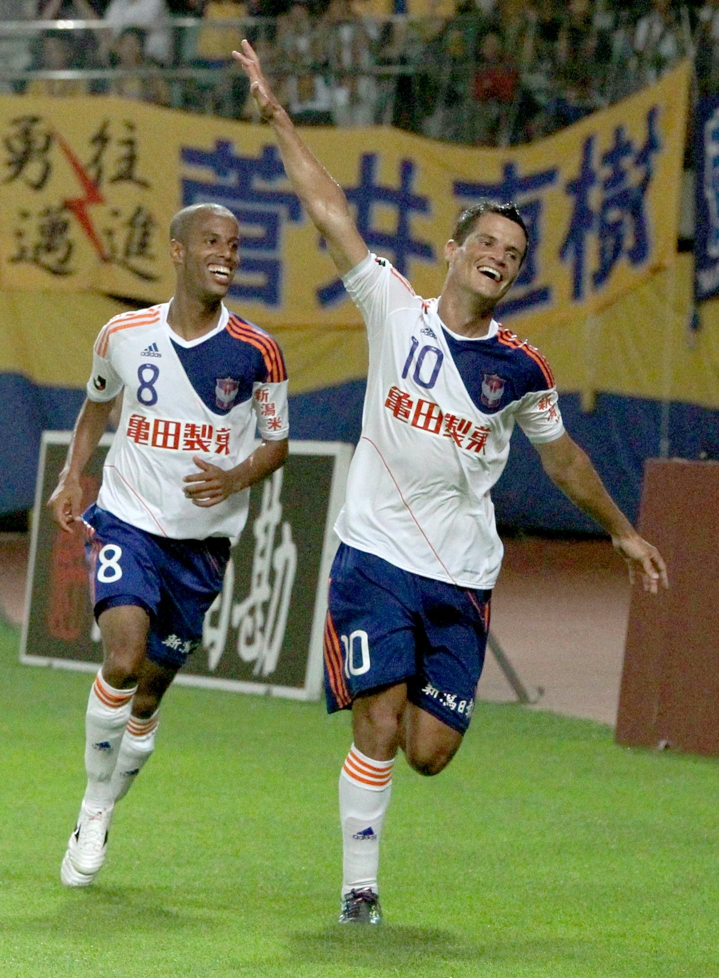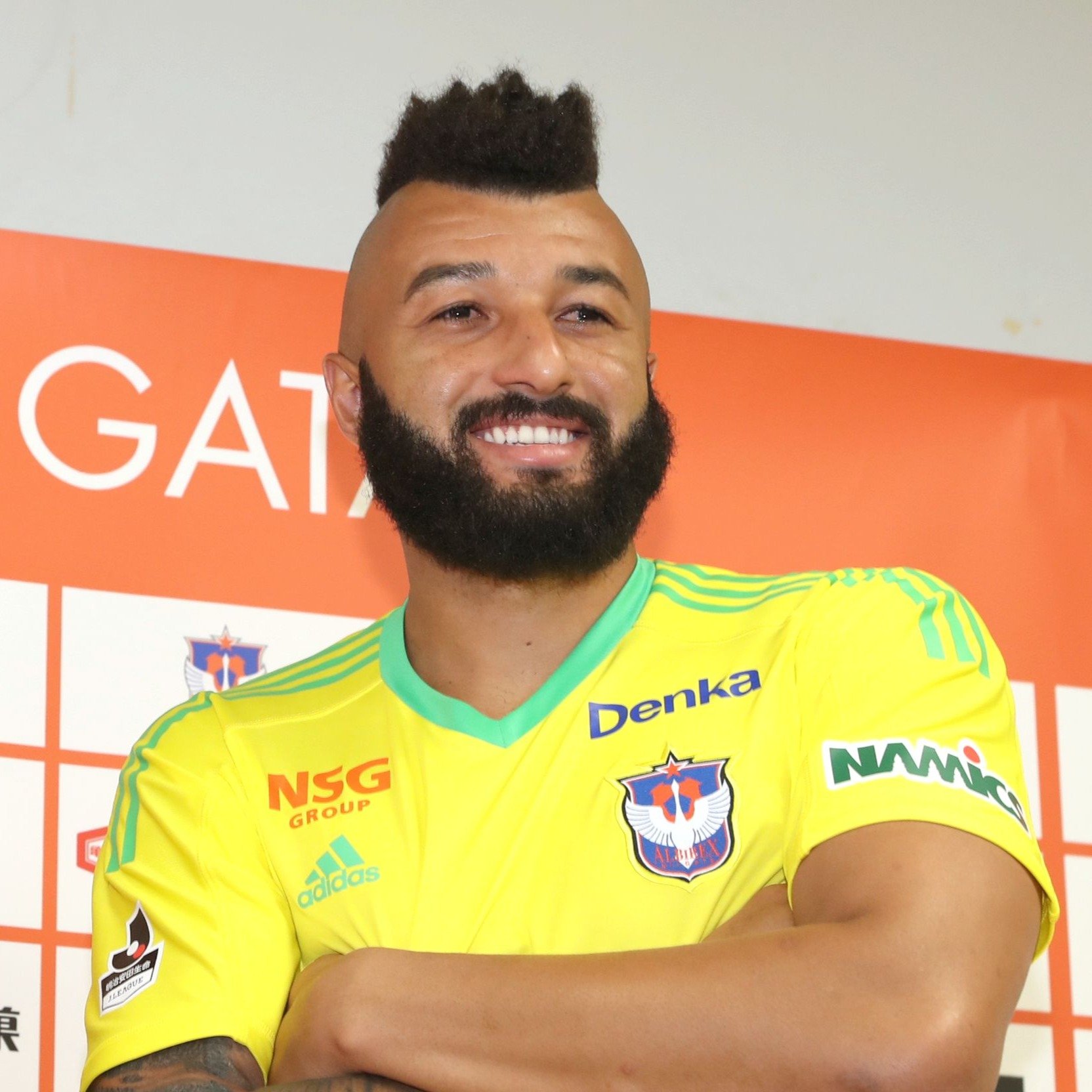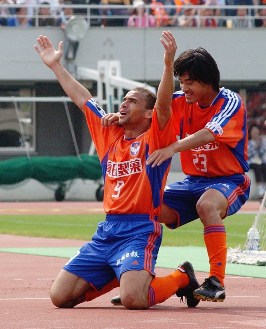 新潟のブラジル人ストライカーの「元祖」といえば、この人が思い浮かぶのではないでしょうか。2002年の加入早々、反町康治監督が「(先発に)なるよ。ケタが違うもん」と見抜いた通りの活躍。通算77試合で51得点。2年目は1試合4得点を3回記録し、2年連続のJ2得点王となり、初のJ1昇格の立役者でしたね。