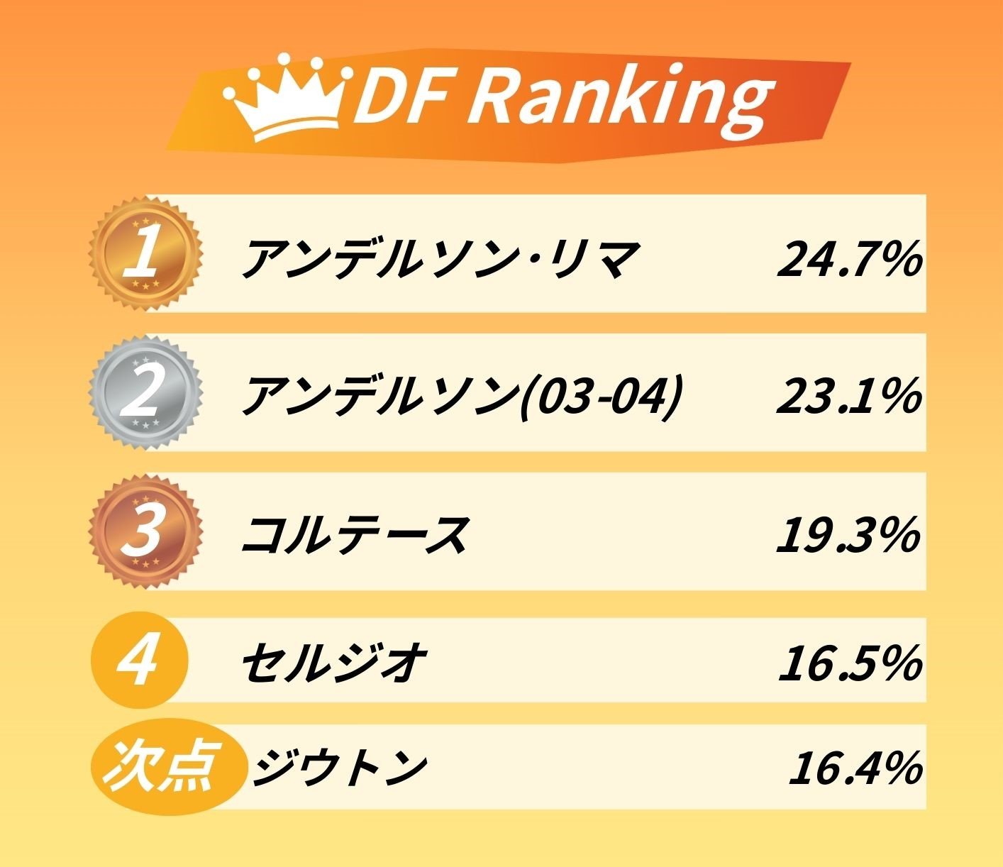 5人から4人選ぶ難しさ、左サイドが2人いたこともあり、僅差で次点のジウトンがかわいそうなので、ご紹介します。