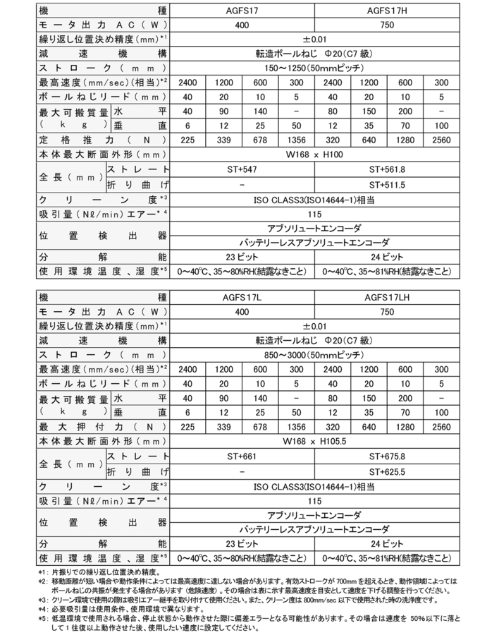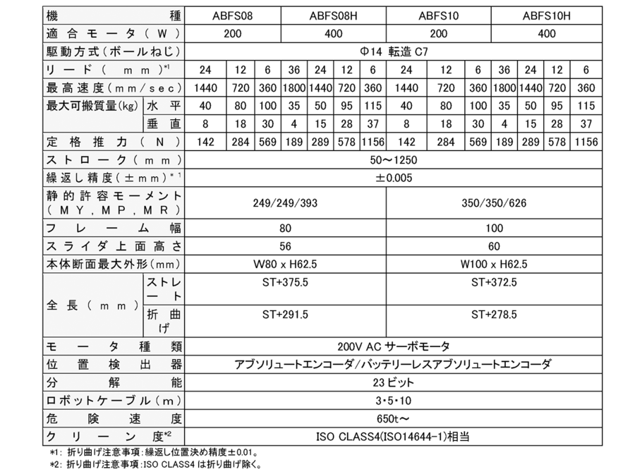 ガイドレールとフレームを一体化した構造により、コンパクトでありながら高いモーメント剛性を備え、水平可搬質量200kg、垂直可搬質量100kg(750W)を実現しています。また高効率で高精度な研削ボールネジを採用し、繰返し位置決め精度±0.01mmと高い精度と耐久性を誇ります。