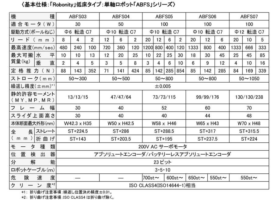 〈「Robonity」ロングストローク、タイミングベルト駆動、低床の3タイプに共通する主な特徴〉
