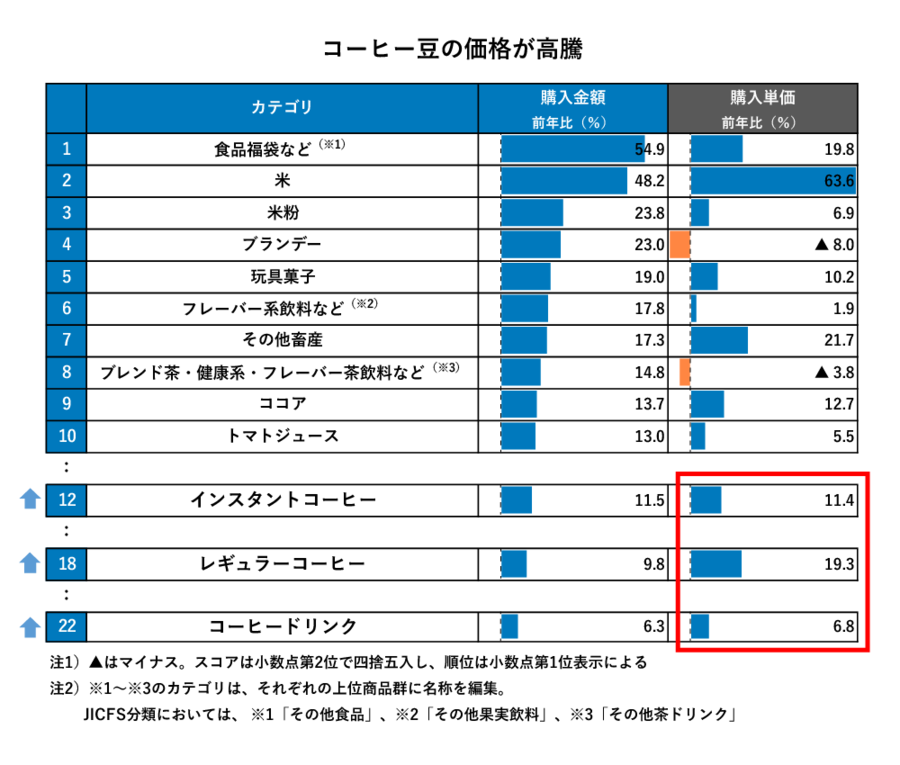 【図表5】 コーヒー豆の価格高騰により、コーヒー関連のカテゴリの順位が上昇