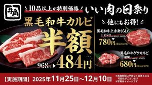 コロワイドグループの株式会社レインズインターナショナルが展開する「牛角」では、2025年のブラックフライデーに合わせ、黒毛和牛を特別価格でご提供する、年に一度の「いい肉の日祭り」を開催します。実施期間は2025年11月25日(火)~12月10日(水)の2週間。この機会にぜひ気軽に“黒毛和牛三昧”をお楽しみください。