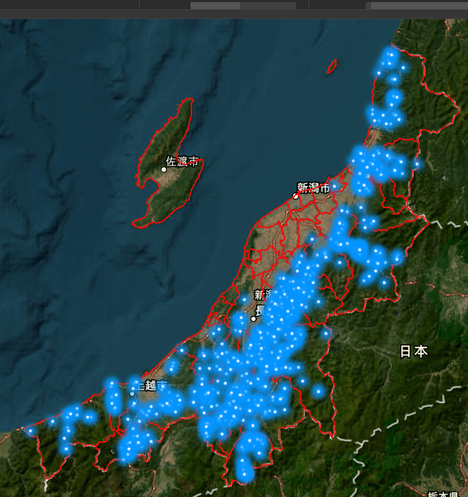 続いて、ここ数年における県内の熊の出没地域の推移を見てみましょう。(詳細は新潟県鳥獣被害対策プラットフォームのページから確認できます)