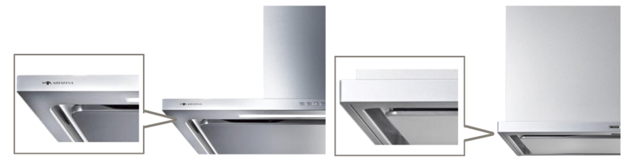 フード部薄さ35mm、部品間の継ぎ目やねじを排除した“ユニボディフォルム”を採用。シンプルかつ無駄のない外観が、キッチン空間に自然に溶け込みます。ステンレスの質感と繊細なエッジ処理により、空間の上質さを際立たせます。