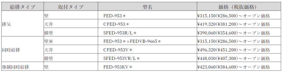 壁面取付タイプ 天井取付タイプ 横壁取付タイプ