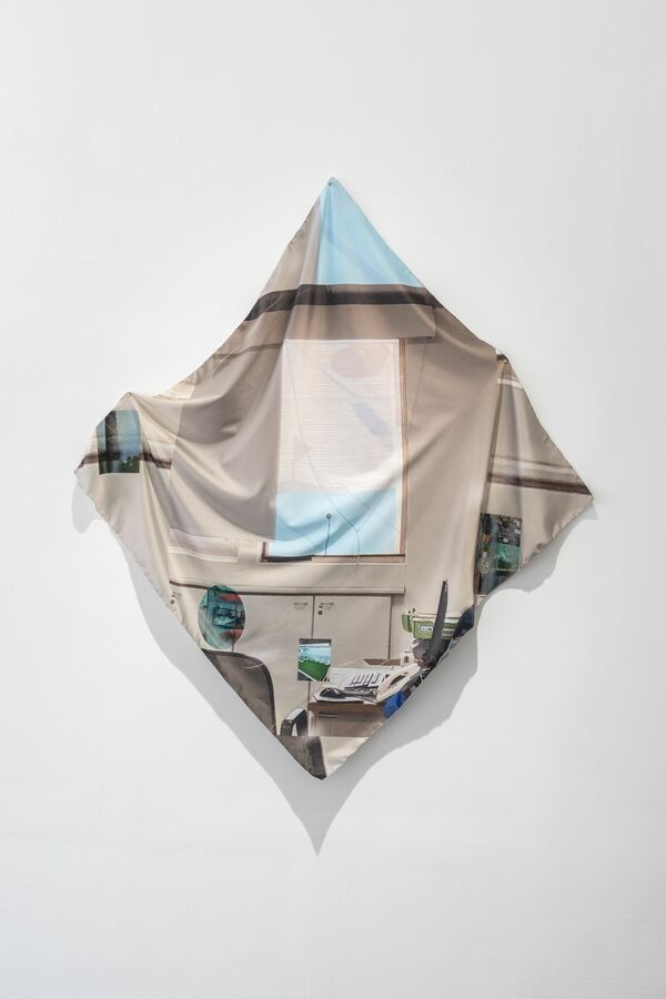 《magic window view_Office》800×800mm(Dimension variable)PVCレンチキュラー、布にインクジェットプリント、2025年