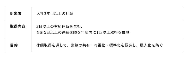 “休暇の義務化”ではなく、休暇を前提とした業務共有の仕組み化。