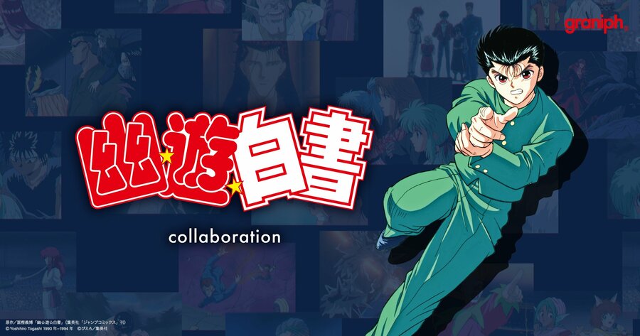 1992年〜1995年まで放送されたTVアニメ『幽☆遊☆白書』。子供を交通事故から助け命を落とした不良少年の浦飯幽助は、生き返るための試練を受け、霊界探偵として活躍していく中で強敵との戦いに身を投じていきます。メインキャラクターの幽助、桑原、蔵馬、飛影に加え、戸愚呂やコエンマなど、作品を語る上では欠かせないキャラクターたちがラインナップ。『幽☆遊☆白書』の物語を堪能できるコラボレーションアイテムをぜひお楽しみください。