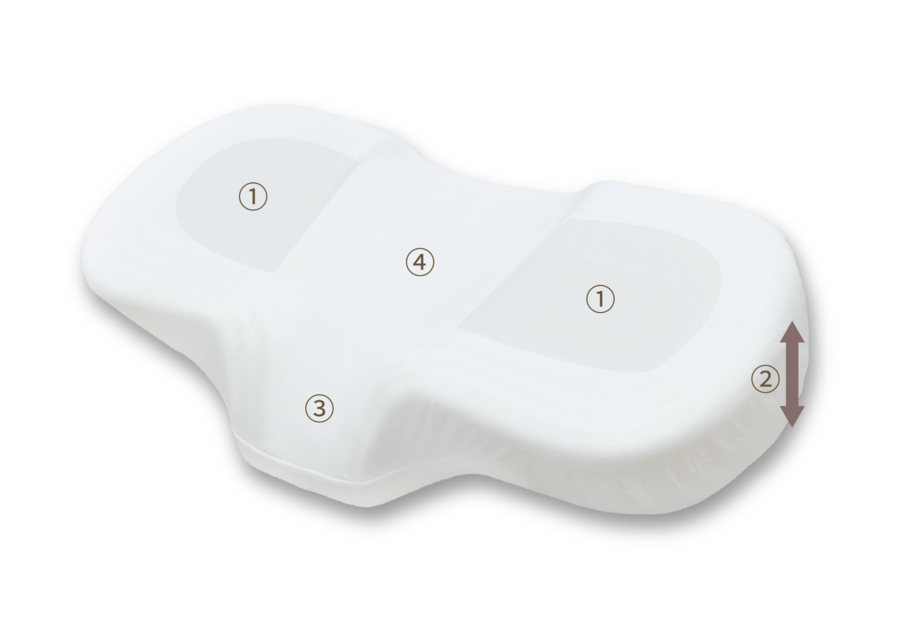 ①横向きの状態でも耳への圧迫を軽減する「イヤーポケット」