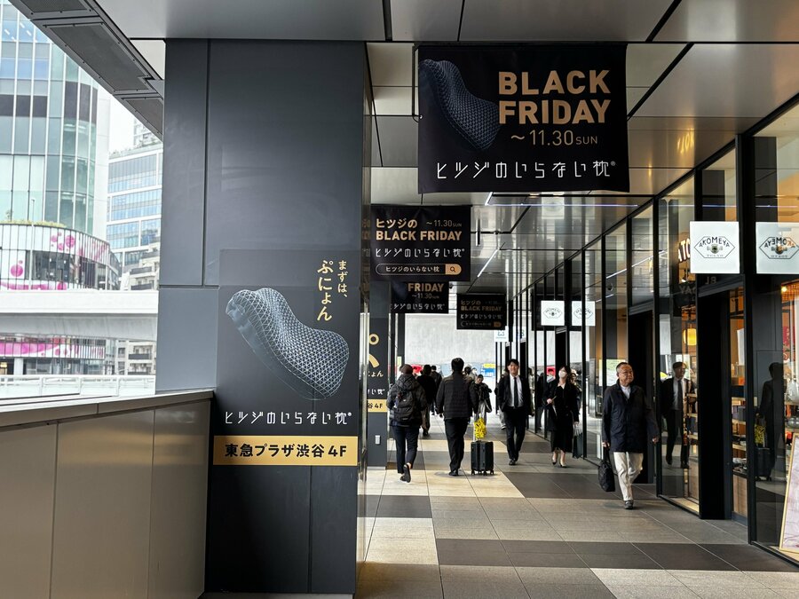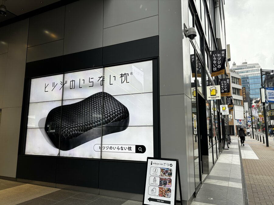 情報感度の高い人々が集まる渋谷エリアにて、大規模な屋外広告を実施します。11月24日(月)~11月30日(日)の期間、「ヒツジのいらない枕 東急プラザ渋谷店」が入居する渋谷フクラスでは、フロントビジョン・エントランスビジョン、共用通路デッキの柱装飾やバナー、正面エントランスや外壁フラッグなど、多面的な広告展開を実施。さらに、渋谷エリアのその他大型ビジョンでもCM放映し、渋谷エリアを「ヒツジのいらない枕」の広告でジャックします。