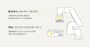 ニコンの超小型マシンビジョンカメラLuFact(ルファクト)を採用することで、ロボットアームに取り付けるセンサー(カメラ)の軽量・小型化を実現しています。