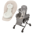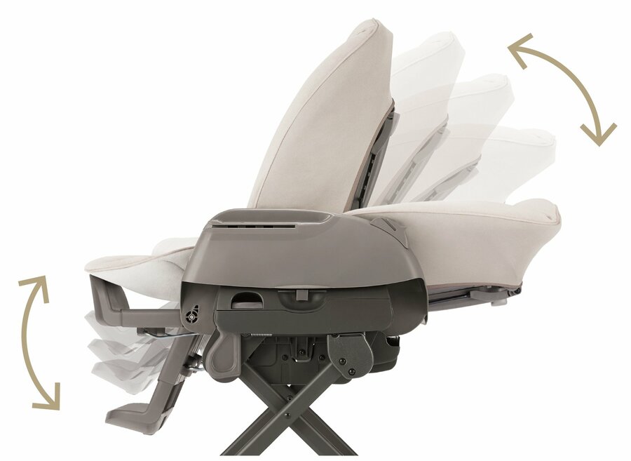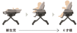 高さとリクライニングは5段階の調節ができ、寝かしつけのベッドからお食事のときのハイチェアとして4才頃(体重18㎏以下)まで、赤ちゃんの成長にあわせて活躍します。