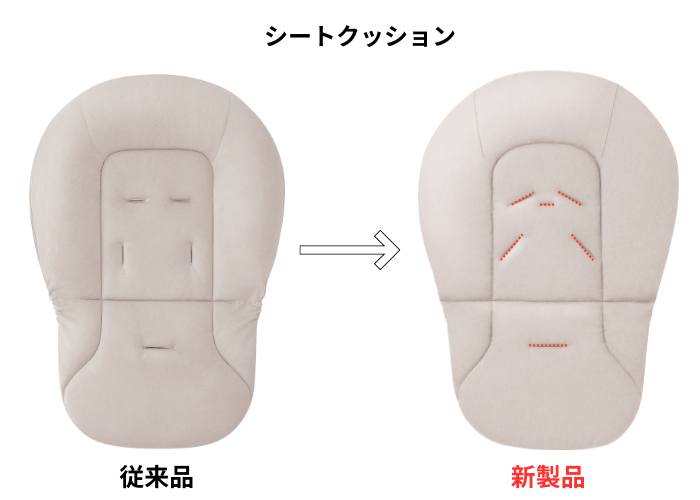 (※4) アカチャンホンポ先行販売品「オリーブグリーン」のインナークッションは、表面に吸水速乾に優れたエンジェルメッシュ生地、背座部裏面にもちふわ生地を採用しています。