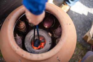 当日は国際高専2年生が「エンジニアリングデザイン」の授業の一環で※、白山麓キャンパス校舎前休耕田を活用して栽培・収穫した「高専紅はるか」の壺焼き芋を学生自身で販売するほか、お店で扱う生芋販売も行われます。