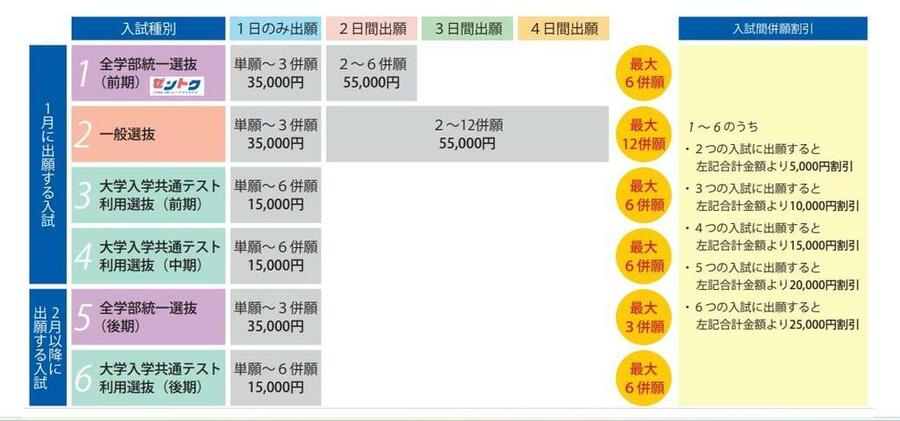 ・2日間とも出願(2~6併願):55,000円 ※前期のみ