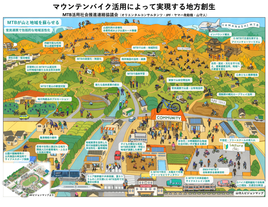 ヤマハ発動機株式会社は、このたび、株式会社オリエンタルコンサルタンツ(東京都渋谷区、以下、オリエンタルコンサルタンツ)、株式会社JPF(東京都千代田区、以下、JPF)、一般社団法人山守人、株式会社山守人(山梨県市川三郷町、以下、山守人)と共に、「MTB 活用社会推進連絡協議会」の設立メンバーとして参画いたしました。
