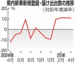 北陸信越運輸局新潟運輸支局が発表した2025年10月の新潟県内新車新規登録・届け出台数は、24年10月比5・0%増の8417台で、4カ月ぶりに増加した。軽自動車で新型車の販売が好調だったことが要因とみられる。