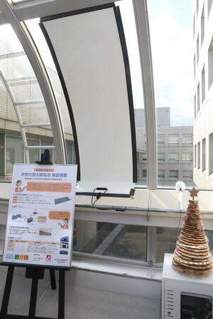 県は26日、軽量で薄い次世代型太陽電池「カルコパイライト」の導入に向けた実証事業を始めた。1平方メートル当たり千グラムほどと軽く、薄さ0・8ミリ程度で折り曲げられるのが特長。県庁内の窓ガラスなどにパネルを設置し、豪雪地での発電効率や積雪の荷重に対する耐久性などを検証する。