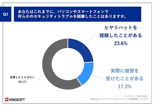 01|60歳以上の親と18歳未満の子を持つ方の40.9%が、何らかのセキュリティトラブルを経験(実害17.3%、ヒヤリハット23.6%)