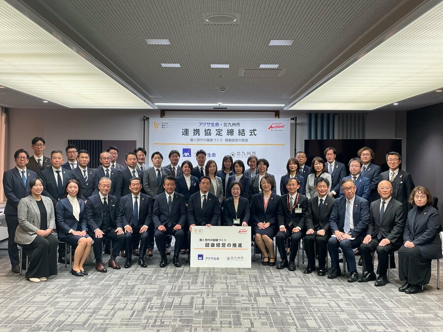 アクサ生命保険株式会社(本社:東京都港区、代表取締役社長 兼 CEO:安渕 聖司)は、2025年11月26日、北九州市(市長:武内 和久)と、健康経営の推進に関する連携協定を締結しました。本協定は、北九州市と当社が相互に連携・協力して市内企業等における健康経営を推進することにより、市内企業等の従業員の健康増進や生産性の向上等を図ることを目的としています。