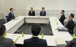 対談を終え握手する、ノーベル生理学・医学賞に選ばれた大阪大の坂口志文特任教授(左)と全国がん患者団体連合会の天野慎介理事長=11月4日、大阪府吹田市