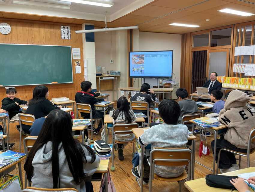 村上市立山辺里小学校からの依頼に応じ、日本経済新聞社新潟支局の水庫弘貴新潟支局長が「特別出前講座」を実施しました。