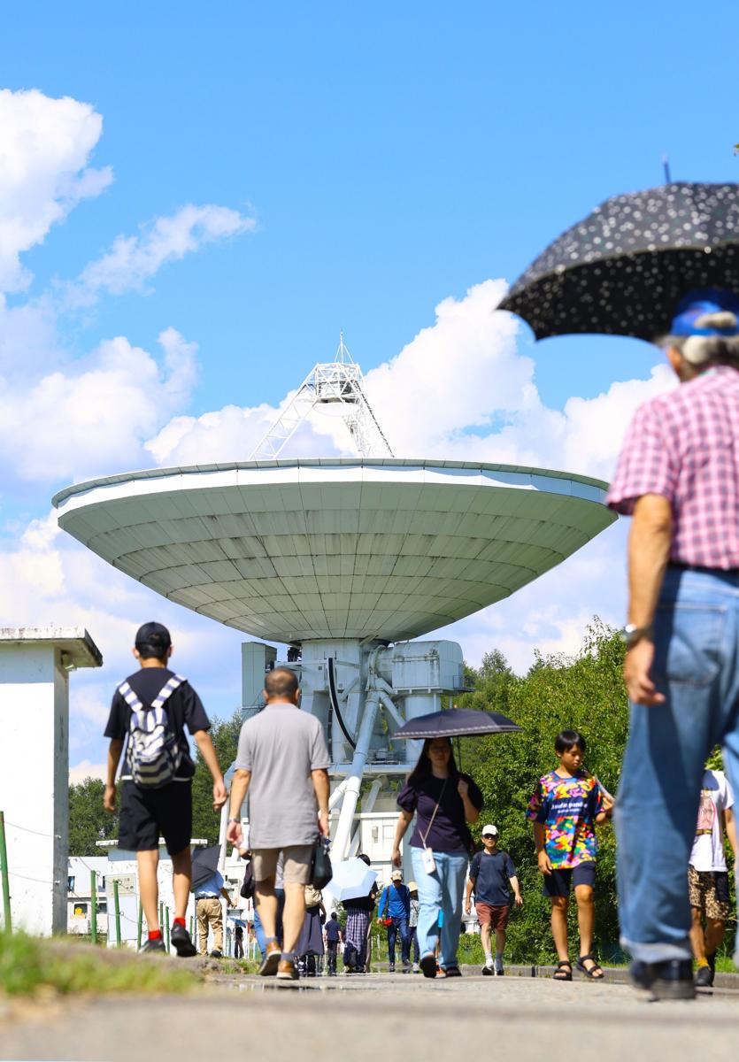 高原の開かれた場所に直径45メートルの巨大パラボラアンテナを備えた電波望遠鏡が鎮座する。今年8月、その周りに親子連れや若い女性グループなどが集まり、ポーズを取るなどして次々に記念撮影していた。ここは長野県南牧(みなみまき)村の国立天文台野辺山宇宙電波観測所。世界の宇宙観測をリードする電波天文学の拠点施設だ。さまざまな観測装置が並ぶ天文愛好家垂涎(すいぜん)の地だが、観光客が集まったわけはそれだけではない。