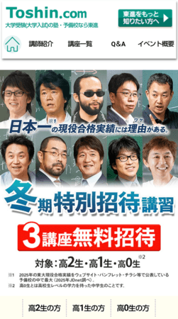東進の講習90分授業×5回ほか に 最大3講座無料招待 (最終締切:1講座招待は12/26まで)