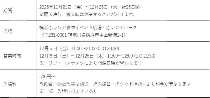 『Christmas Market in横浜赤レンガ倉庫』 開催概要