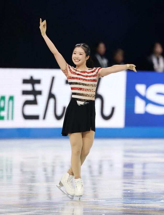 演技を終え、観客の声援に応える中井亜美=IGアリーナ
