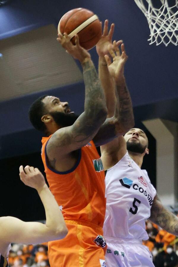 先発はフェルプス、長谷川智伸、五十嵐圭、パウエル、長尾光輝。前半は長尾がハイペースで内外から決め、ポーグ健がテンポ良く3点シュートを沈めた。43-28の15点差で試合を折り返した。