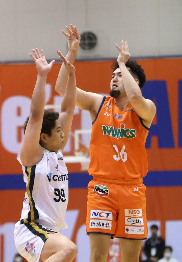 B3の新潟アルビレックスBBは第11節第1日の6日、新発田市カルチャーセンターで3位の八王子と戦い、78-66で勝って2連勝とした。後半2点差まで追い上げられたが突き放した。通算成績14勝7敗で、順位を5位から4位に上げた。