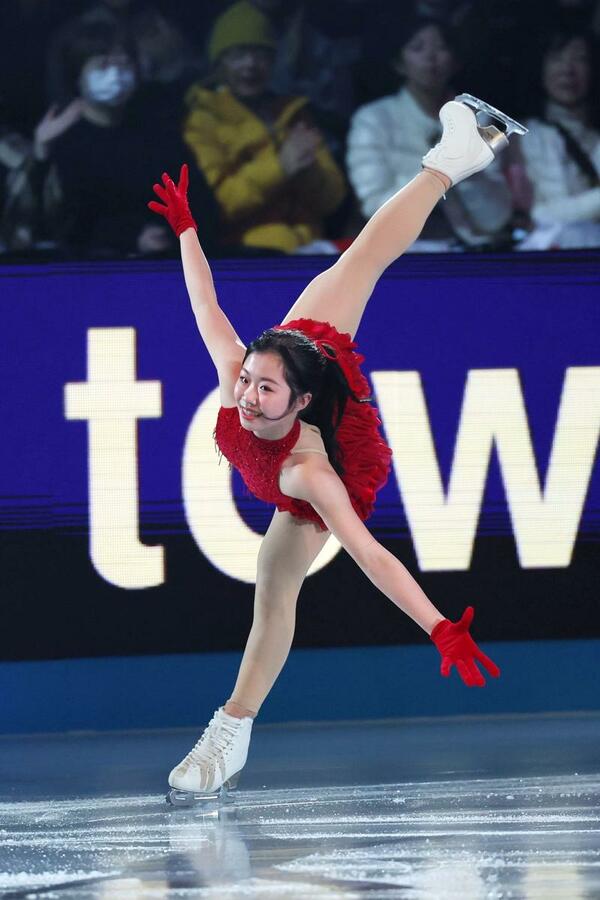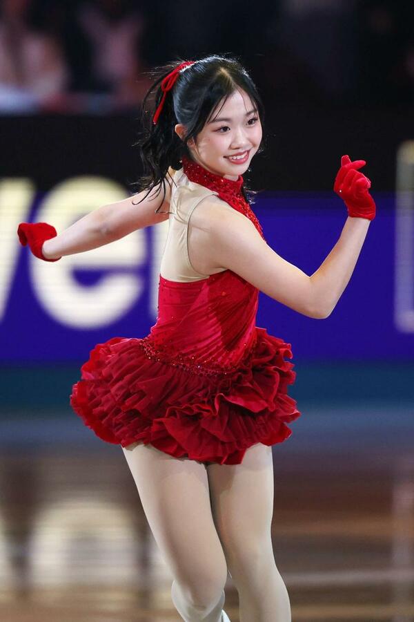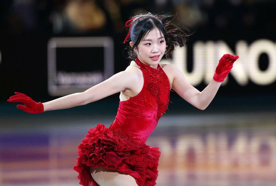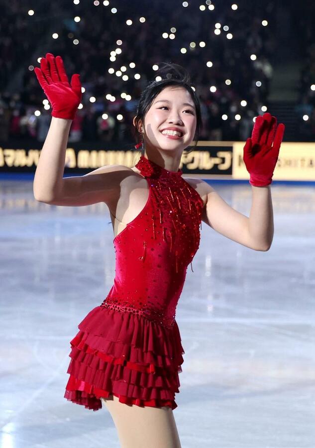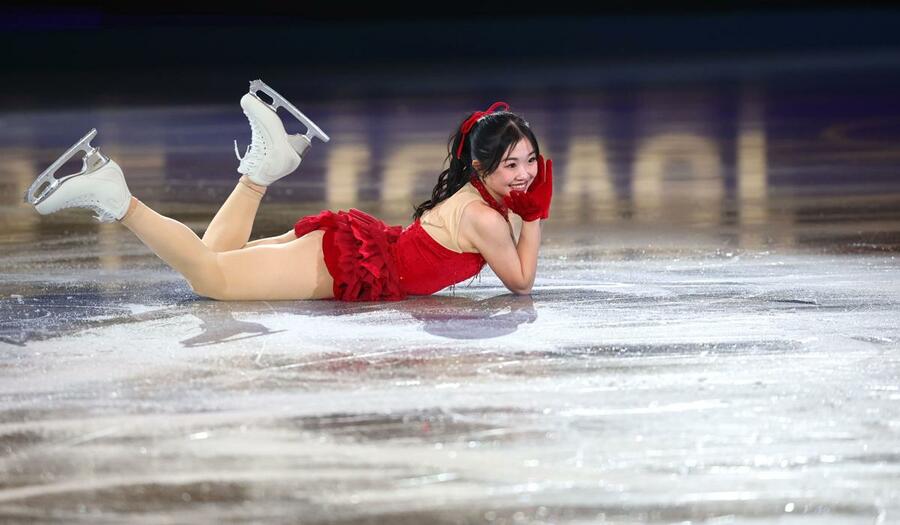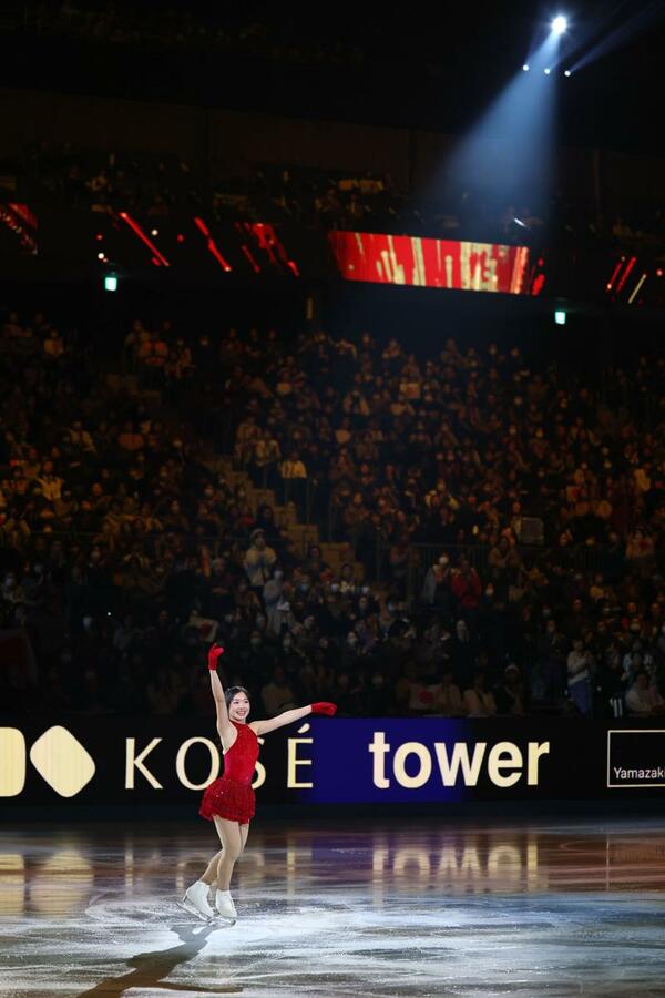 真っ赤な衣装で登場。氷上で楽しそうに舞って会場を盛り上げると、亜美スマイルで大会を締めくくった。